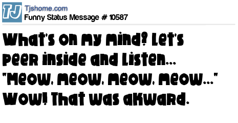 X says What's on my mind? Let's peer inside and listen... "Meow, meow, meow, meow..." Wow! That was akward.