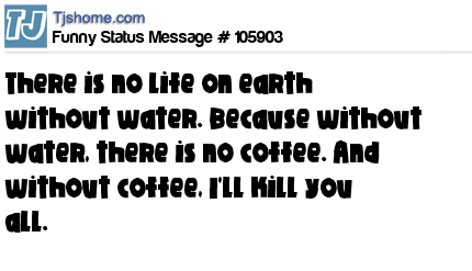 X says There is no life on earth without water. Because without water, there is no coffee. And without coffee, I'll kill you all.