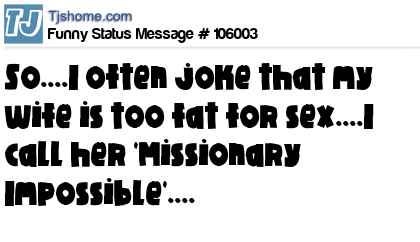 X says so....I often joke that my wife is too fat for sex....I call her 'Missionary Impossible'....