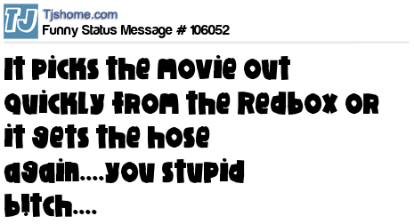 X says It picks the movie out quickly from the Redbox or it gets the hose again....you stupid b!tch....