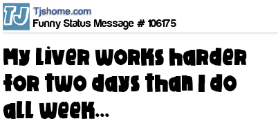 - # 130832 "Great, another three-day work week. FML!" ~ My Liver.