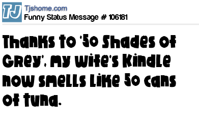 X says Thanks to '50 Shades of Grey', my wife's Kindle now smells like 50 cans of tuna.