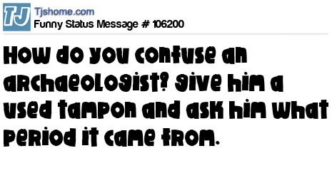 X  how do you confuse an archaeologist? give him a used tampon and ask him what period it came from.