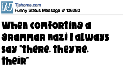 - # 114351 When a grammar Nazi gets sad and lonely, give them a hug and say, "There, their, they're."