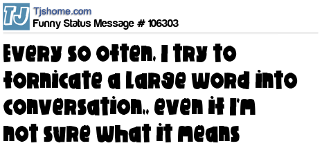 X Every so often, I try to fornicate a large word into conversation,, even if I'm not sure what it means