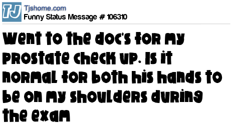 - # 143784 Not sure if my doctor is a righty or a lefty but I'm pretty sure he shouldn't have had both on my shoulders during that prostate exam.