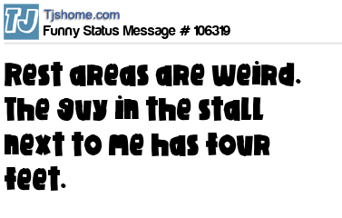 - # 187572 Rest areas are weird.... The guy in the stall next to me has four feet.