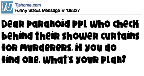 - # 85494 Dear paranoid people who check behind their shower curtains for murderers, If you do find one, what's your plan?