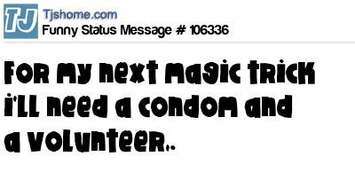 - # 12581 for my next magic trick, I need a condom and a volunteer.