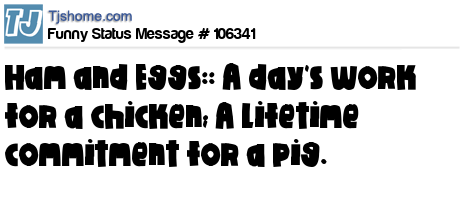 X  Ham and Eggs:: A day's work for a chicken; A lifetime commitment for a pig.