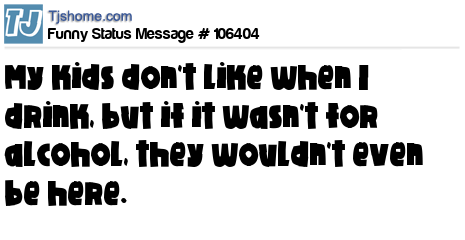 X My kids don't like when I drink, but if it wasn't for alcohol, they wouldn't even be here.