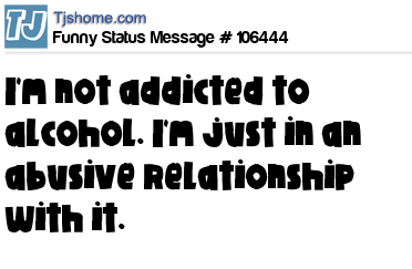 - # 13108 Alcohol your like my abusive boyfriend, no matter how bad you kick my ass, I always go back to you the next day:)