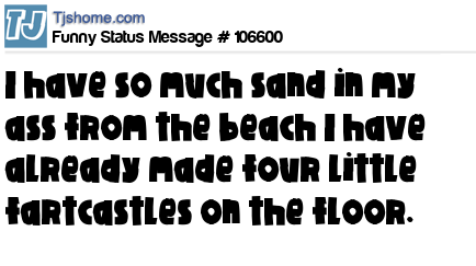 X I have so much sand in my ass from the beach I have already made four little fartcastles on the floor.