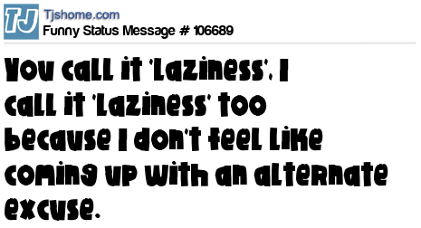 X says You call it 'laziness', I call it 'laziness' too because I don't feel like coming up with an alternate excuse.