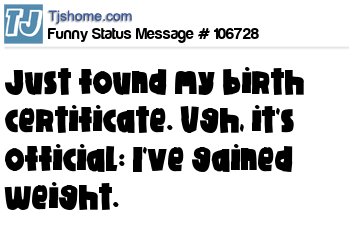 X is Just found my birth certificate. Ugh, it's official: I've gained weight.