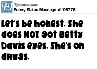 X says Let's be honest. She does NOT got Betty Davis eyes. She's on drugs.