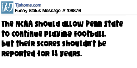 - # 107325 I told the NCAA I was a Penn State fan and they "vacated" my last 15 birthdays which restores me to my early 20's...Anyone up for a game of beer pong tonight? ツ