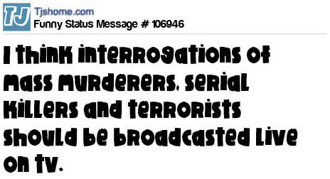 X is I think interrogations of mass murderers, serial killers and terrorists should be broadcasted live on tv.