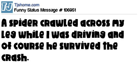 X says A spider crawled across my leg while I was driving and of course he survived the crash.