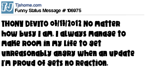 X THONY DEVITO 07/17/2012 No matter how busy I am, I always manage to make room in my life to get unreasonably angry when an update I'm proud of gets no reaction.