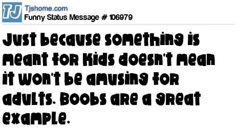 X Just because something is meant for kids doesn't mean it won't be amusing for adults. Boobs are a great example.