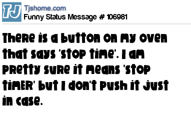 - # 107354 There is a button on my oven that says ‘stop time'. I am pretty sure it means ‘stop timER' but I don't push it just in case.