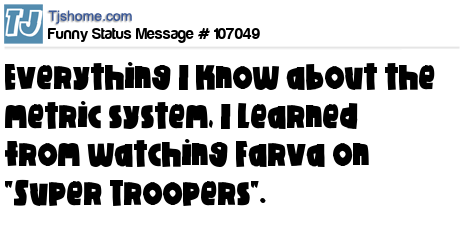 X is Everything I know about the metric system, I learned from watching Farva on "Super Troopers".