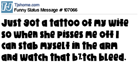 X Just got a tattoo of my wife so when she pisses me off I can stab myself in the arm and watch that b%tch bleed.