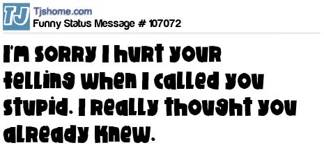 - # 88735 Im sorry I hurt your feelings when I called you stupid ... I really thought you already knew!