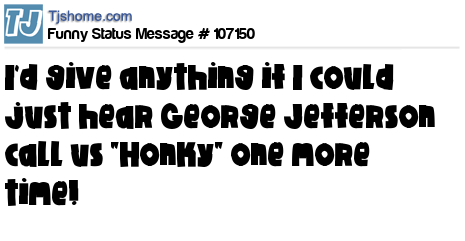 X says I'd give anything if I could just hear George Jefferson call us "Honky" one more time!