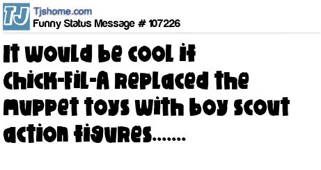 X says It would be cool if Chick-Fil-A replaced the muppet toys with boy scout action figures.......