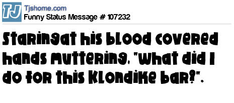 X is Staringat his blood covered hands muttering, "what did I do for this Klondike bar?".