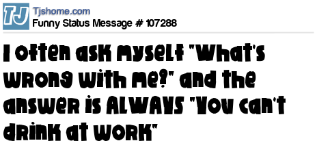 X says I often ask myself "What's wrong with me?" and the answer is ALWAYS "You can't drink at work"