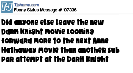 X is Did anyone else leave the new Dark Knight movie looking forward more to the next Anne Hathaway movie than another sub par attempt at the Dark Knight