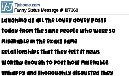 X is laughing at all the lovey dovey posts today from the same people who were so miserable in the exact same relationships that they felt it news worthy enough to post how miserable, unhappy and thoroughly disgusted they were with that exact same person