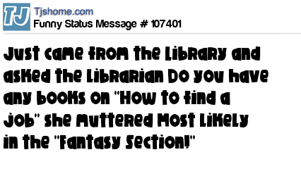 X is Just came from the Library and asked the librarian Do you have any books on ''How to find a job'' she muttered Most likely in the ''Fantasy Section!''