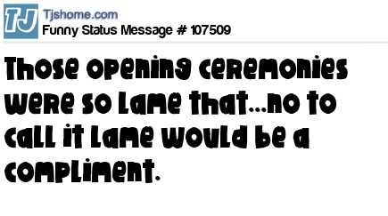 X  Those opening ceremonies were so lame that...no to call it lame would be a compliment.