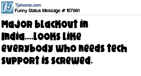 - # 107781 Tech Support in India? They cnt even fix their own Blackouts :)