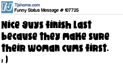 - # 56734 Nice guys finish last, because they make sure their girl come first.