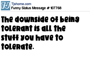 X The downside of being tolerant is all the stuff you have to tolerate.
