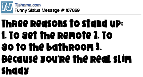 - # 58951 Three resons to stand up. 1) to go bathroom 2) to get the T.V remote and 3) because your the real slim shady.