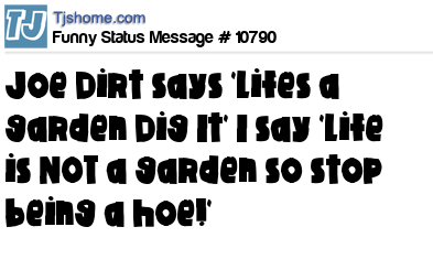X Joe Dirt says 'Lifes a garden Dig It' I say 'life is NOT a garden so stop being a hoe!'