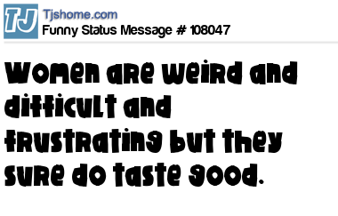 X says Women are weird and difficult and frustrating but they sure do taste good.