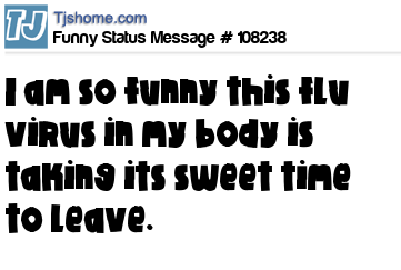 X says I am so funny this flu virus in my body is taking its sweet time to leave.