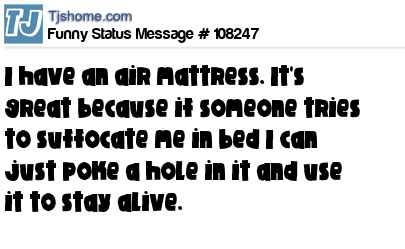 X says I have an air mattress. It's great because if someone tries to suffocate me in bed I can just poke a hole in it and use it to stay alive.