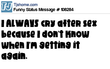 X says I ALWAYS cry after sex because I don't know when I'm getting it again.