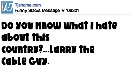 X Do you know what I hate about this country?...Larry the Cable Guy.