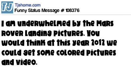X is I am underwhelmed by the Mars rover landing pictures. You would think at this year 2012 we could get some colored pictures and video.