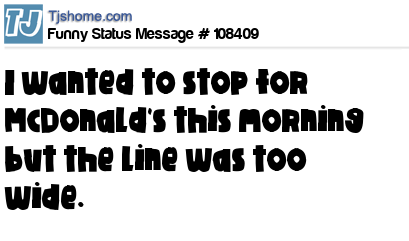 X I wanted to stop for McDonald's this morning but the line was too wide.