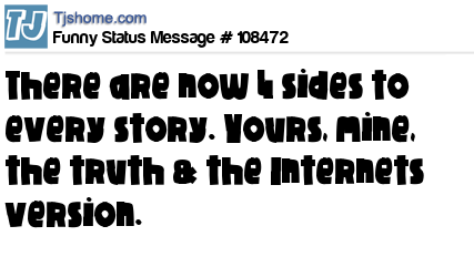 - # 109221 There are 4 sides to every story. Yours, mine, the truth & the Internets version.